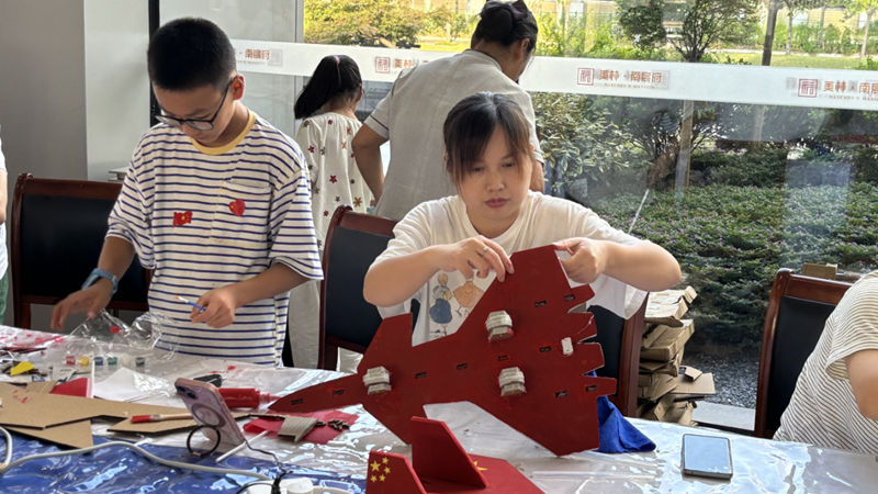 “童心筑梦,一飞冲天”创意航模DIY活动则成功点燃了孩子们的科学热情。孩子们在学习基础航模知识后,亲手组装并调试模型。随着一架架航模在项目上空成功翱翔,现场爆发的欢呼与掌声将活动氛围推向高潮。